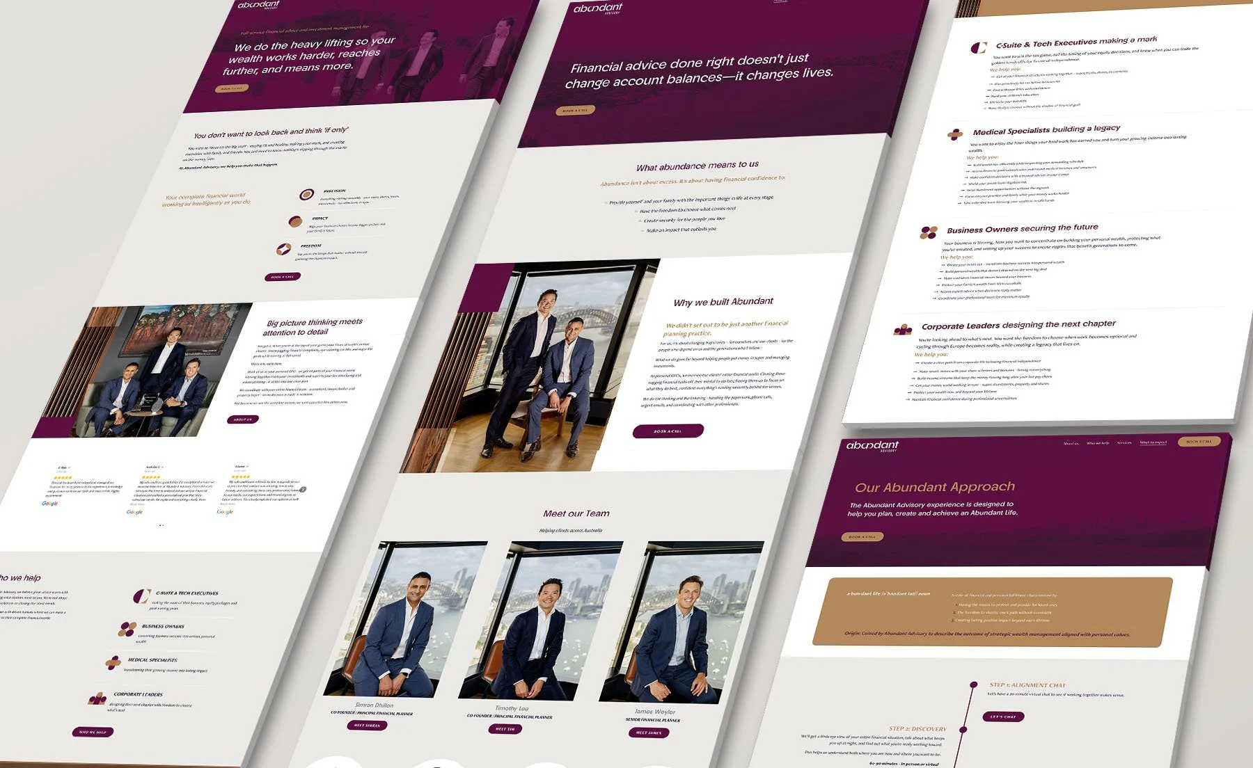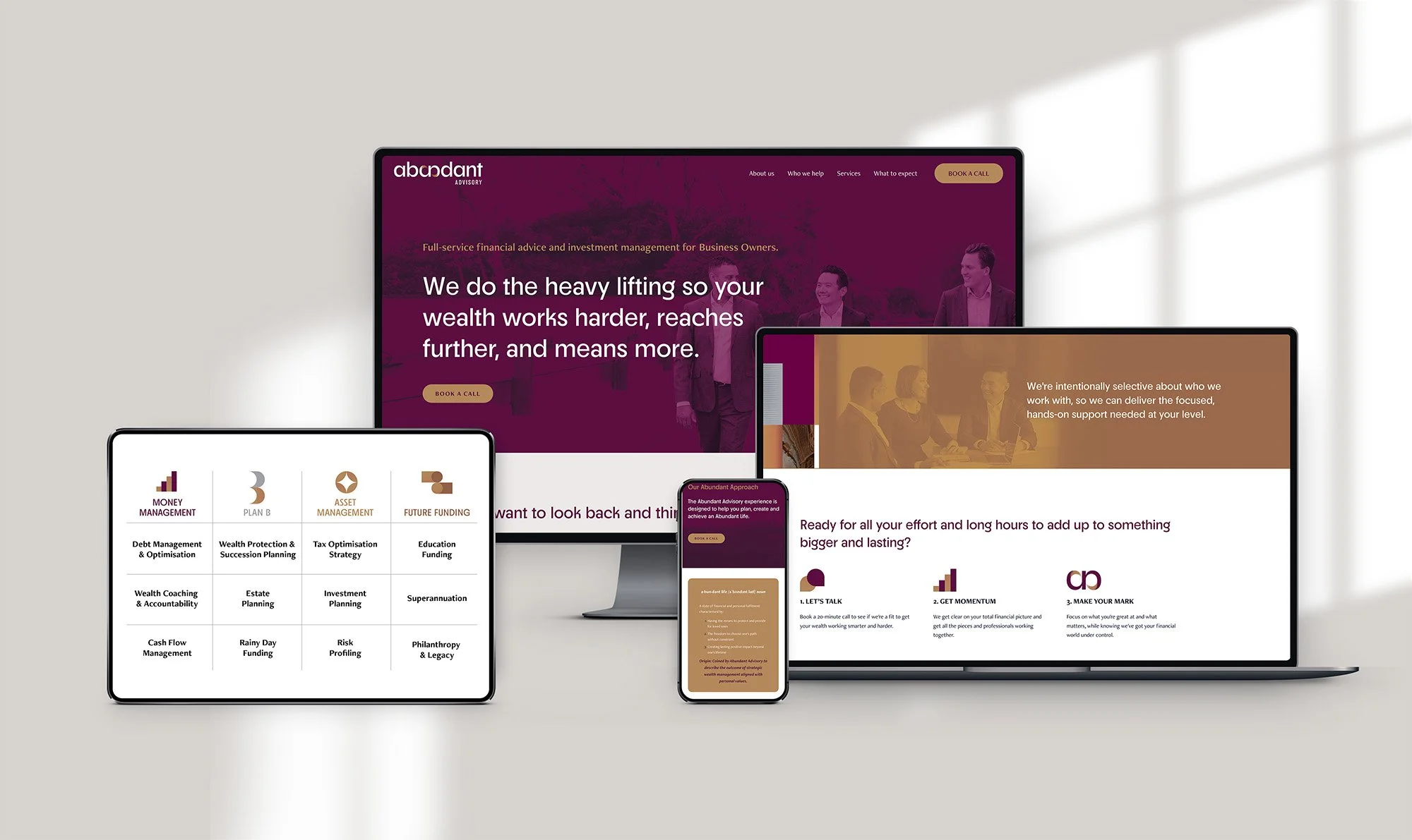 Abundant Advisory had built a solid reputation serving high-net-worth professionals, but their visual identity and online presence felt disconnected from the calibre of clients they helped and the sophisticated service they deliver.
